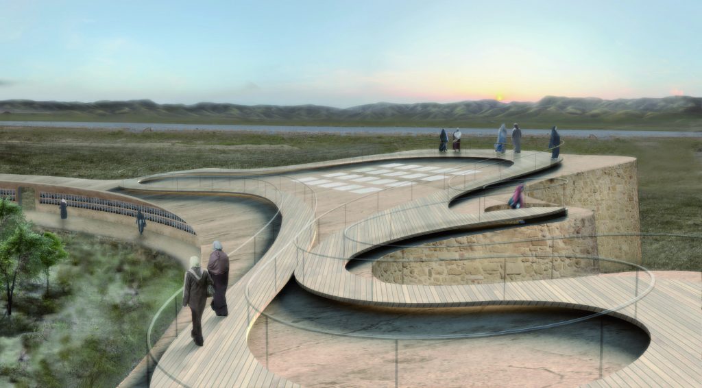 Das begehbare Dach ermöglicht den Blick auf den gegenüberliegenden Friedhof und schafft so die Verbindung zu den Opfern. Der geschützte Innenraum bietet Platz für gemeinsames Gedenken, Ausruhen und soziale Aktivitäten. Die Außenmauer wirkt einerseits als Mahnung an das berüchtigte Gefängnis Nugra Salman, in dem viele Frauen während Anfal inhaftiert waren und erinnert zugleich an die schützenden Mauern der traditionellen Häuser in den währende Anfal zerstörten Dörfern von Germian. „Hinter den Gefängnismauern öffnet sich das neue Leben“ kommentiert eine Anfal-Überlebende. Und: „Hier können wir gemeinsam trauern und Beerdigungen begehen, aber ebenso auch die Hochzeiten unserer Kinder feiern“. So spiegelt der Bauentwurf den schmerzvollen Weg der Frauen von Opfern zu Überlebenden.