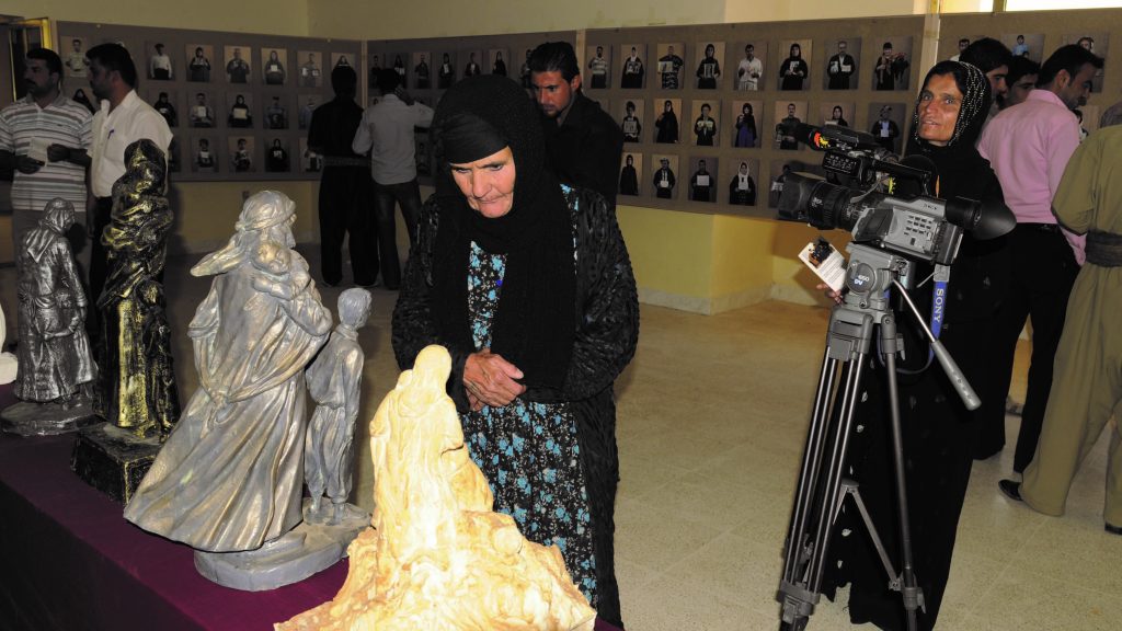 In Diskussionen mit lokalen Künstler*innen entwickelten die Anfal überlebenden Frauen die Idee einer lebensgroßen Statue einer Frau mit einem toten Kind auf dem Arm und einem lebenden Kind an ihrer Seite. Die Figur soll sowohl den Schmerz und die Trauer, aber auch ihre Stärke und ihren Überlebensstolz ausdrücken. In mehreren Ausschreibungsrunden entstanden an die 15 Modelle. Bislang hat noch kein Entwurf die Frauen überzeugt – der gemeinsame Gestaltungsprozess geht weiter. Der Prozess der plastischen Ausgestaltung ihrer Erinnerung gibt den Frauen ein Forum zur Artikulation ihrer widersprüchlichen Gefühle zwischen Trauer und Hoffnung, Verzweiflung und Stolz.