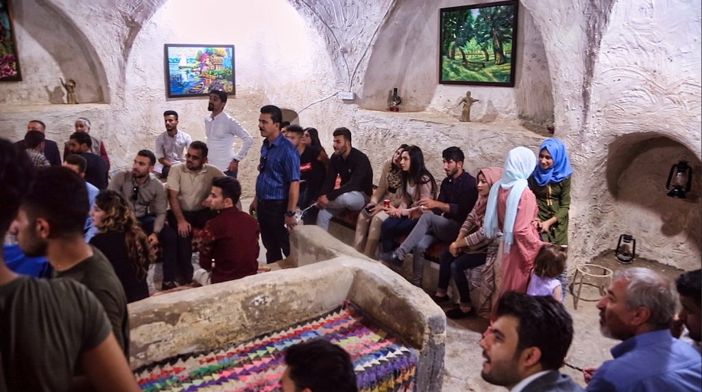 • Im Oktober 2018 organisierten HAUKARI e.V. und das Kunst- und Kulturzentrum ein „Kunst- und Friedensfestival“ in Kifri. Das Festival brachte 60 Künstler*innen aus 8 Städten der Kurdischen Region und 4 Städten des Irak zusammen, die ihre Werke ausstellten, Filme zeigten, Theater spielten und Musik machten. Sechshundert vor allem junge Menschen, aber auch Honoratioren der Stadt und der Region, nahmen teil. Über die Nutzung von historischen Gebäuden und öffentlichen Plätzen für Ausstellungen und Straßentheater verwandelte sich die ganze Stadt in eine Bühne, trugen Künstler*innen ihre Werke und Ideen zu den Themen Menschenrechte, Geschlechtergerechtigkeit und Demokratie auf die Straße und bezogen die Stadtbevölkerung aktiv ein. Immer wieder wurde dabei angeknüpft an die lange Geschichte friedlichen Zusammenlebens verschiedener ethnischer Gruppen in Kifri. Drei Tage lang wurde hier vielsprachig und bunt „das Leben gefeiert“ – und inmitten von Konflikten und zunehmenden Fundamentalismen und Nationalismen ein machtvolles Zeichen für Dialog und Frieden gesetzt!